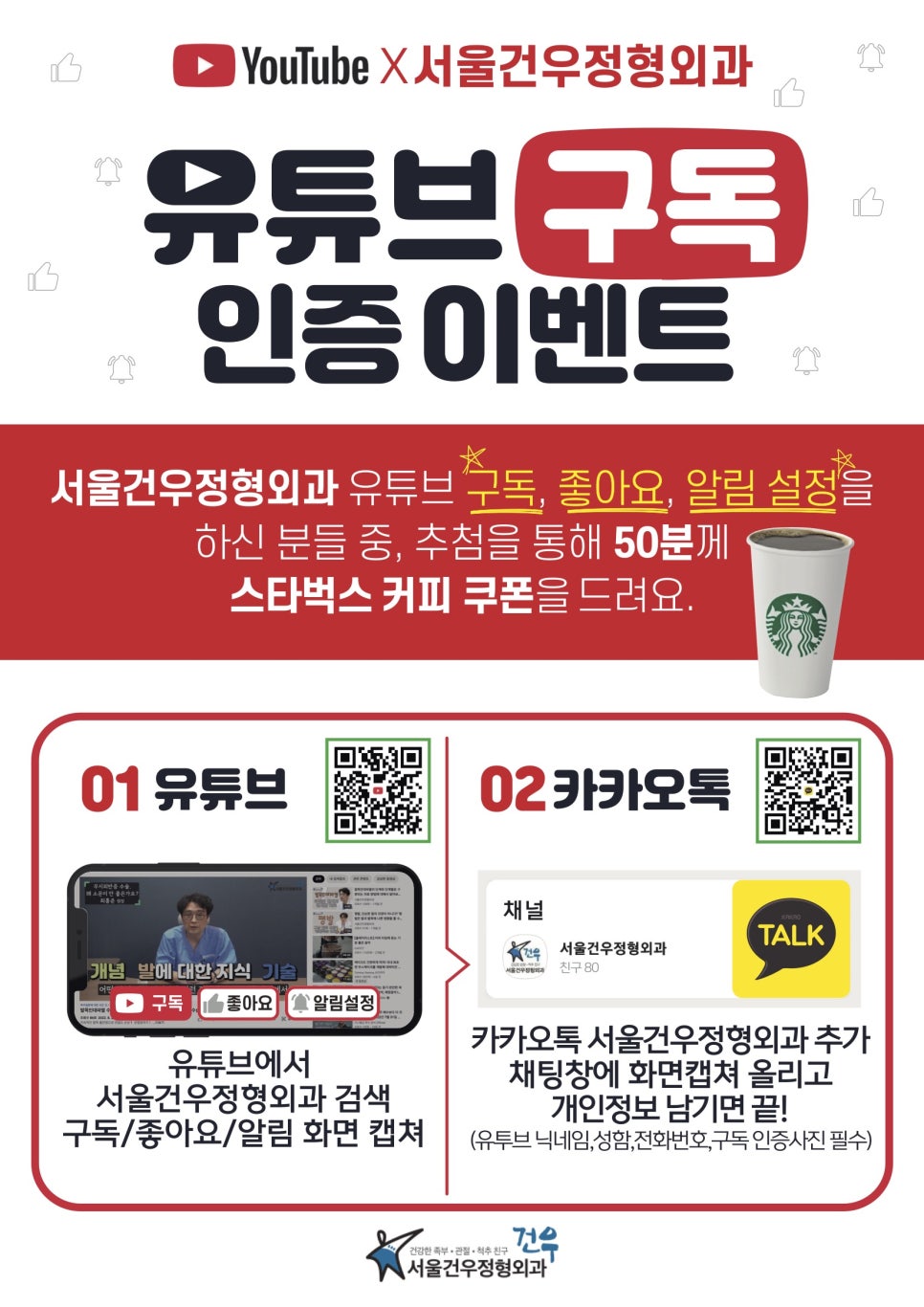[이벤트종료] 참여 감사드립니다~!서울건우정형외과 유튜브 구독 인증 이벤트! 🎉 채널 구독 인증하고, 커피 쿠폰 받아가세요!🎊🎁